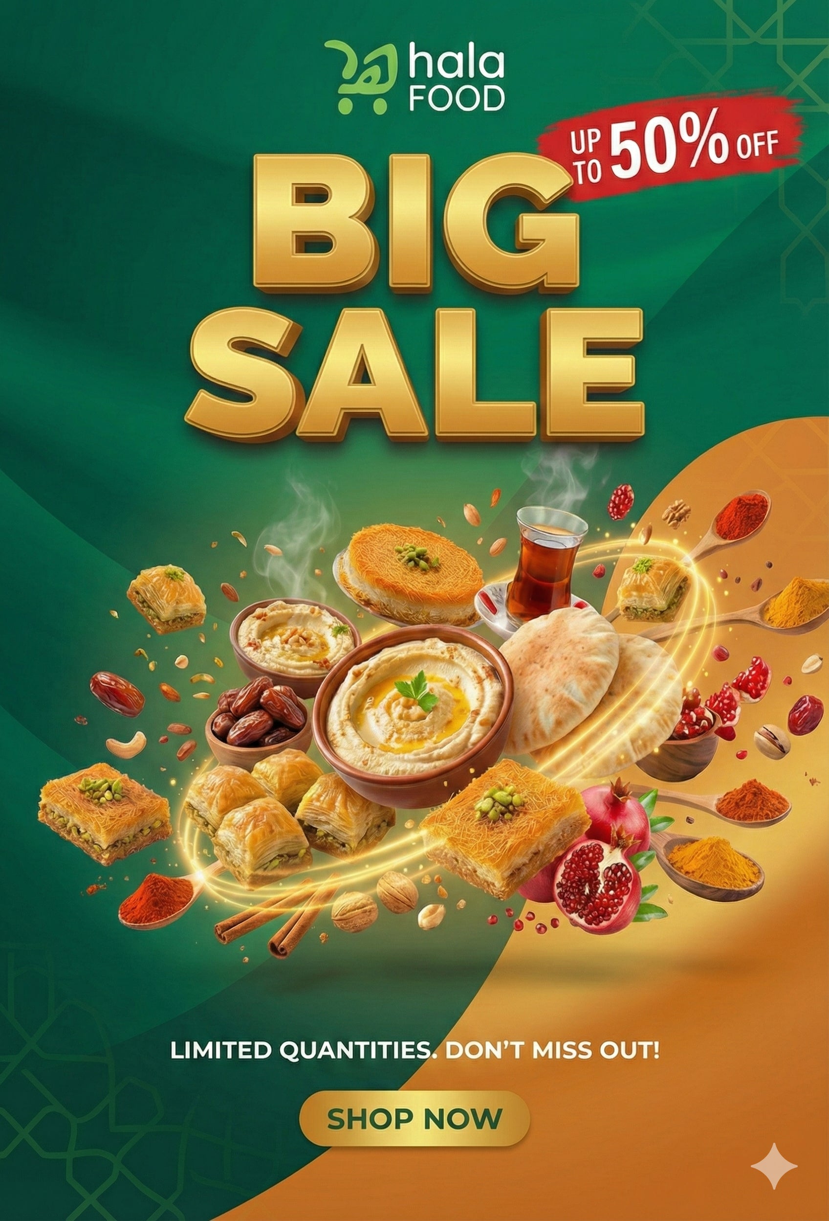 هلا فود هو متجرك الإلكتروني الموثوق للمواد الغذائية الحلال عالية الجودة، نختارها بعناية لخدمة المجتمعات العربية والشرق أوسطية في جميع أنحاء أوروبا.