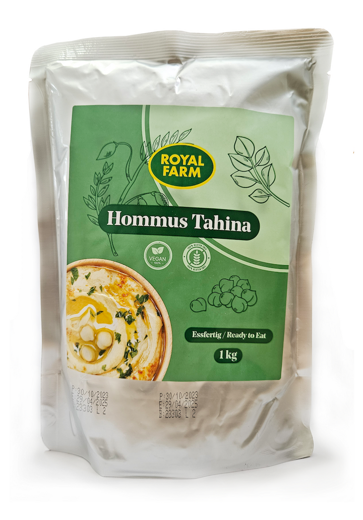حمص بطحينة جاهز للأكل من Royal Farm، غموس شرقي كريمي يناسب المائدة العربية والسندويتشات والوجبات السريعة. عبوة عملية 135 جم بغطاء محكم لتقديم مباشر في أي وقت.