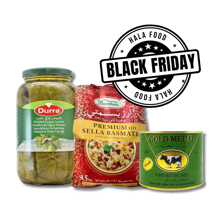Premium-Basmatireis Sella 1121 + eingelegte Weinblätter + Ghee aus Kuhmilch – Sonderangebot