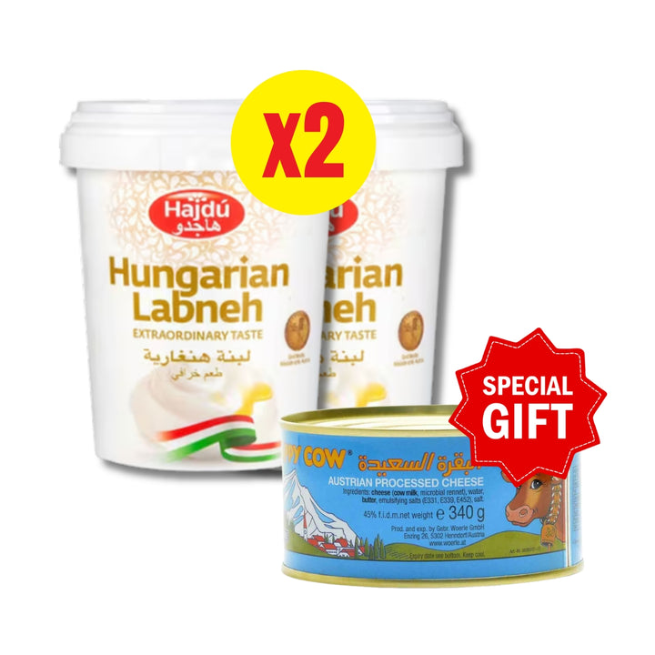 لبنة بالنكهة السورية 2 + جبنة مطبوخة البقرة السعيدة هدية مجانية